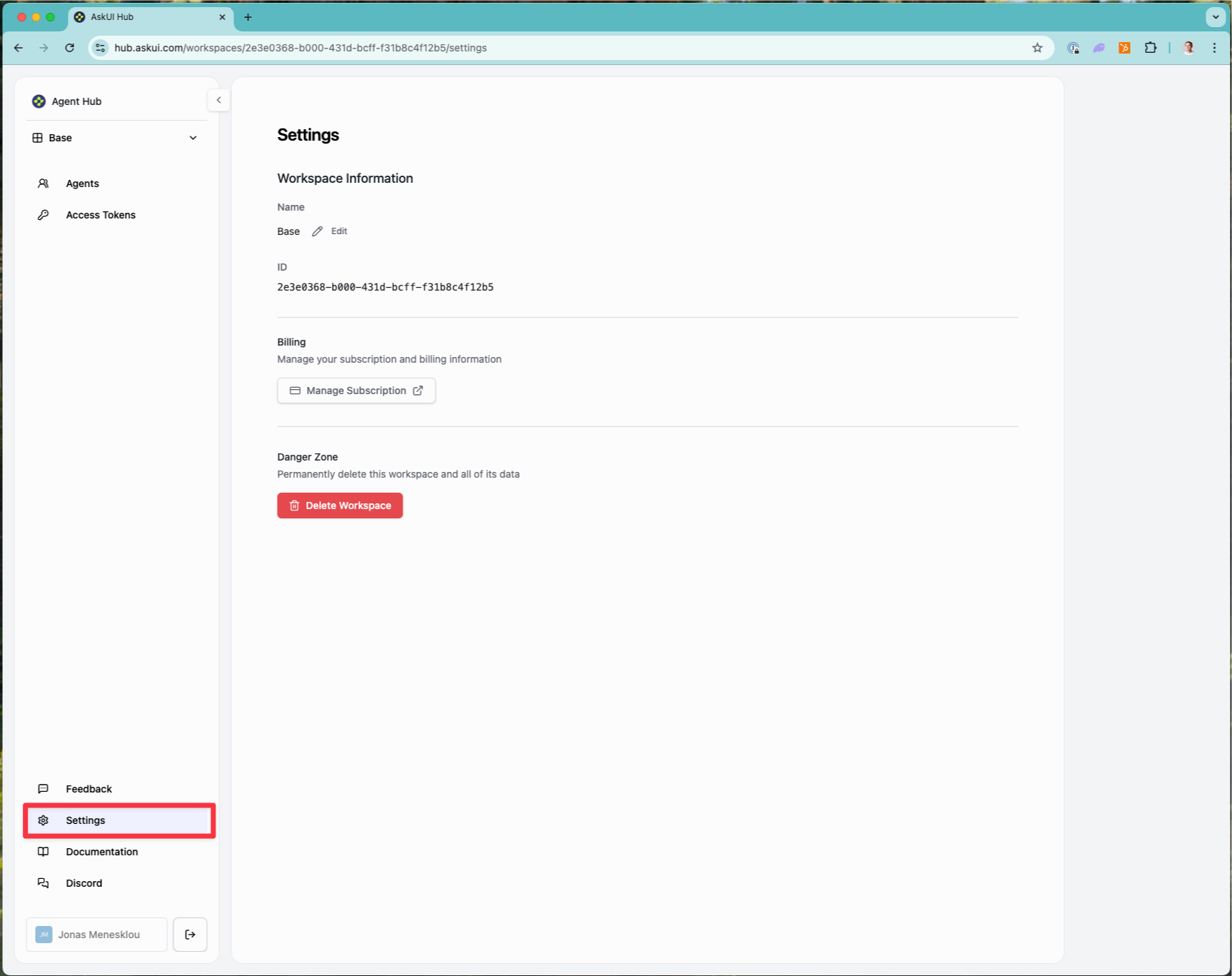 Important: Deleting a workspace immediately removes it and all associated access tokens. There is no recovery period.
